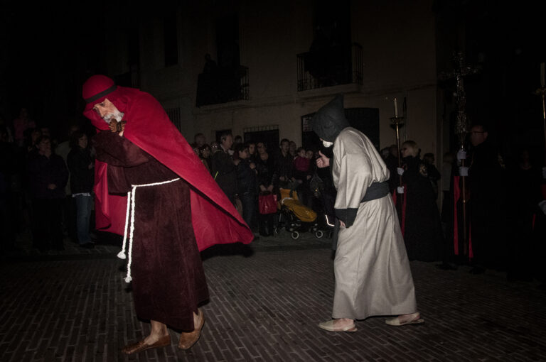 Al començament de la processó interpreten la representació del Sant Sopar a les escales de Sta. Maria i seguidament s’incorporen a aquesta.